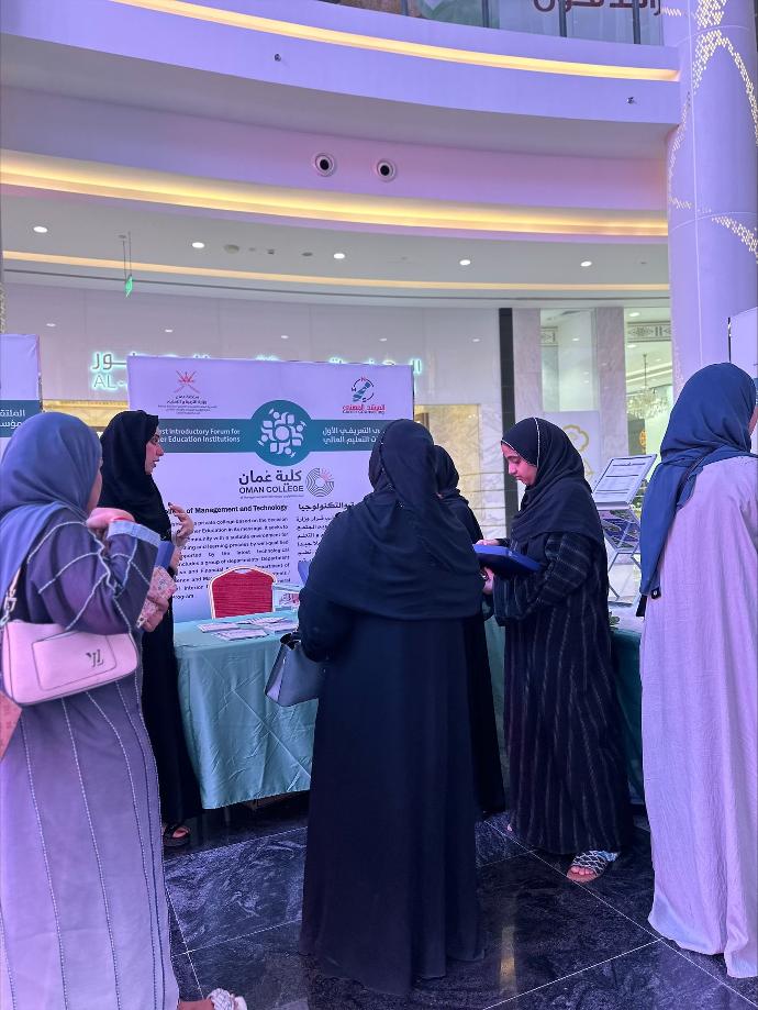 شاركت كلية عُمان للإدارة والتكنولوجيا في الملتقى التعريفي الأول لمؤسسات التعليم العالي في محافظة ظفار حيث استمر المعرض لمدة ٤ أيام من ٢٤ و لغاية ٢٧ يونيو . و شهد المعرض منذ افتتاحه إقبالاً كبيراً من مختلف شرائح المجتمع والدول الشقيقة وطلبة الدبلوم العام و أولياء الأمور. و تأتي مشاركة الكلية في هذا المعرض تواصلا لمشاركاتها في المعارض والفعاليات التعليمية والترويجية بهدف تعريف طلبة الدبلوم العام على أهم وأبرز التخصصات التي تطرحها الكلية والتي تواكب احتياجات سوق العمل، و تسليط الضوء على أهم المزايا التي تقدمها الكلية لطلبتها.