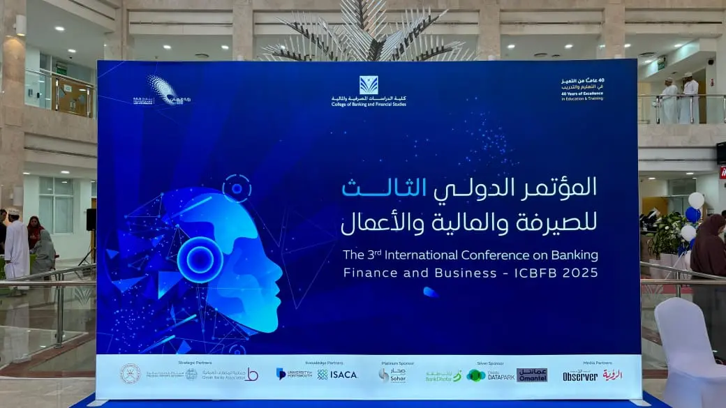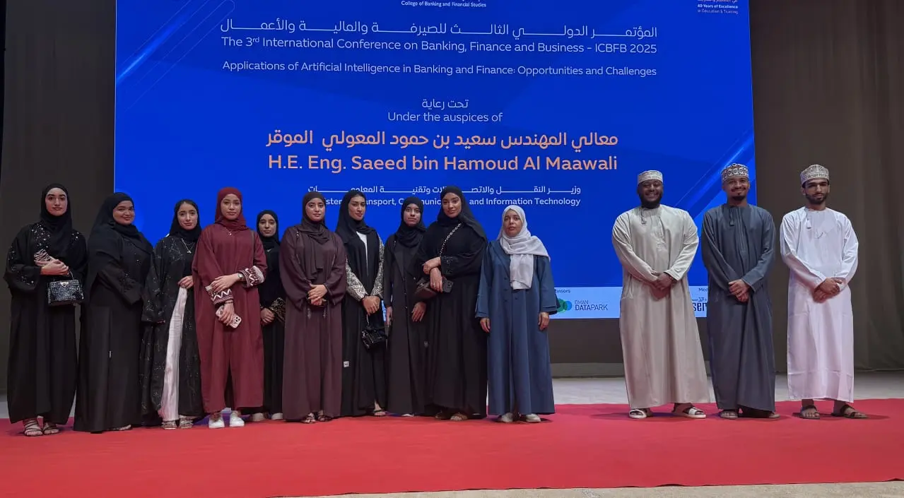 Organized by the College of Banking and Financial Studies, the college participated in the 3rd International Conference on Banking, Finance, and Business, held on April 22, 2025, under the patronage of His Excellency Eng. Saeed bin Hamoud Al-Mawali, Minister of Transport, Communications, and Information Technology.