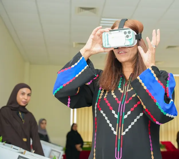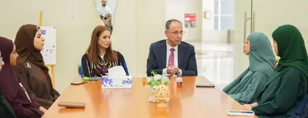 In an initiative to promote student engagement, a dialogue session was held in the student services building between Her Excellency and members of the Student Advisory Council. The Council President delivered a presentation outlining the role of the Council and its initiatives in empowering students and amplifying their voices within the college community. The session was marked by a rich discussion, during which Her Excellency emphasized the importance of empowering women in leadership roles. She affirmed that Arab women have proven their competence in various areas of responsibility, urging female students to trust their capabilities and take initiative in student leadership and university activities.