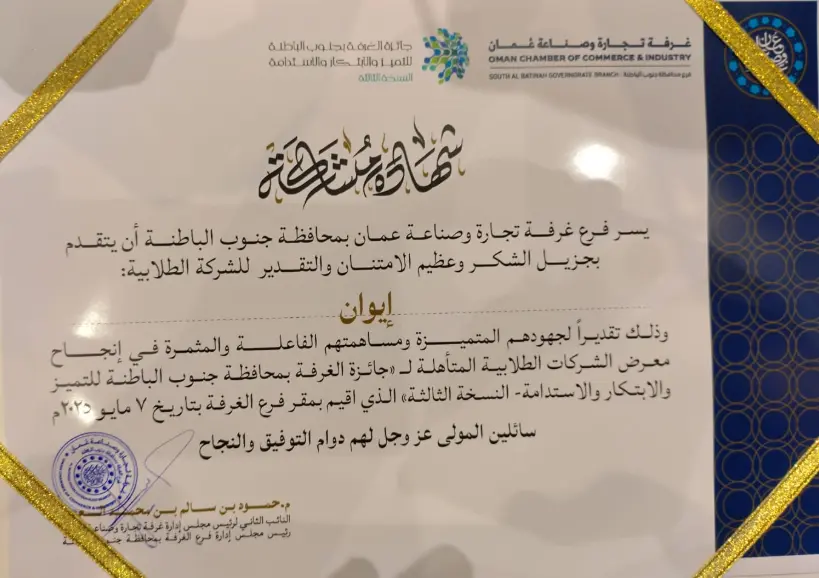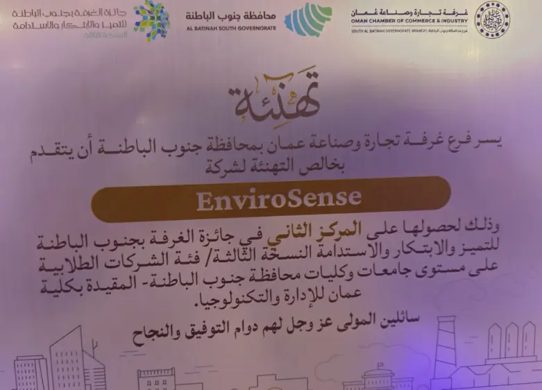 OCMT Shines at the South Al Batinah Chamber Award: "EnviroSense" Wins Second Place in Student Company Innovation