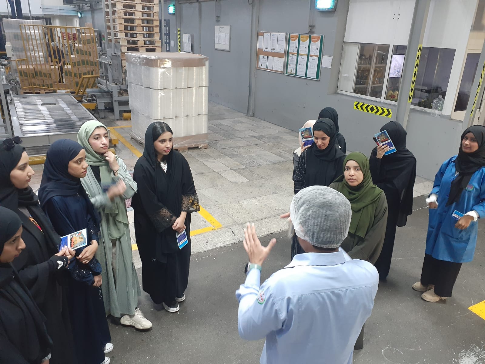 Where the students were received upon their arrival by Engineer Fahd Al-Mandhari, who introduced them to the history of the company and its divisions. After that, he accompanied the students on a tour of the various departments in the company, through which the students learned about: